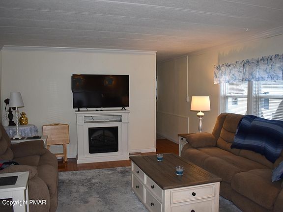 Lovely two bedroom/one full bath manufactured home available in 55+ community of Evergreen Village Cooperative. Home was completely updated three years ago with new appliances, flooring, and heating system. The oversized bathroom includes jetted tub and walk-in shower. The kitchen has ample counter space including a peninsula with seating and lots of storage. Property includes a covered side porch and storage shed and fenced dog run/garden space. The monthly rent of $750 includes water, sewer, trash and recycle, road maintenance and amenities including a pool, lake, and tennis court. Evergreen Village is an active 55+ community offering numerous social activities throughout the year. This is the ideal location for those looking to downsize. Come see for yourself.