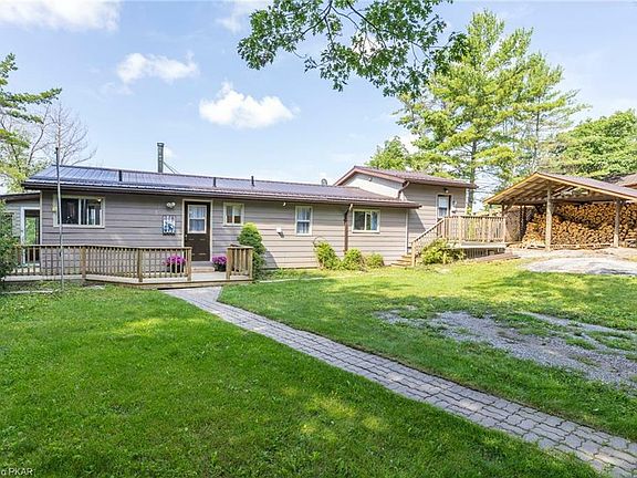 Experience tranquil year-round lakefront living in this bungalow nestled on the serene shores of Lower Buckhorn Lake. Situated along the Trent Severn waterway, this property presents panoramic views of the lake's islands and windswept pines. Bask in the beauty of Western exposure, treating yourself to mesmerizing sunsets that gracefully paint the sky with a vibrant palette. Delight in various aquatic activities such as fishing, boating, water sports, and pristine swimming in the crystal-clear waters. The shoreline stands primed for a dry double-wide boat slip, with a permit. Recent enhancements encompass a contemporary kitchen, upgraded bathrooms, a metal roof, modernized flooring and a WETT Certified Blaze King HE Wood Stove. This property also offers a charming waterside bunkie and a detached double-car garage with a loft. Embrace the chance to possess this waterfront haven, providing a balance between leisure and recreation, all within minutes of Buckhorn town.