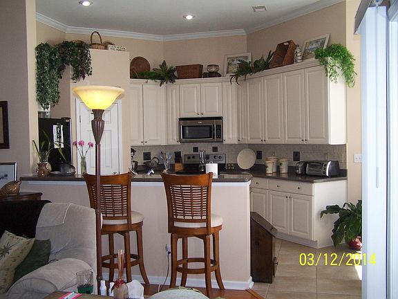 See 3D VT link. Amazing Value in Island West! Beautifully landscaped former Jupiter 3BR, 2BA Model on private cul-de-sac boasts many upgrades. 12' ceilings, crown molding, wainscoting, hardwood floors & transom windows in main living area. Large Eat-in Kitchen has 42" cabinets w/pull-outs, S/S appliances, Corian counters, breakfast bar, & designer tile backsplash w/palmetto accents. Entertaining's easy in the Formal Dining Room w/tray ceiling, Living room w/gas fireplace large screened porch w/ a calming view. Master suite w/tray ceiling & generous custom closets. Laundry Room w/Cabinets & oversized garage! Virtual Tour Now Available!
