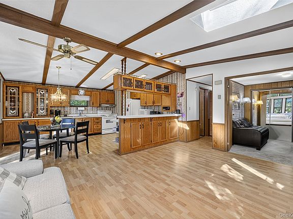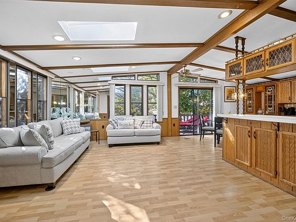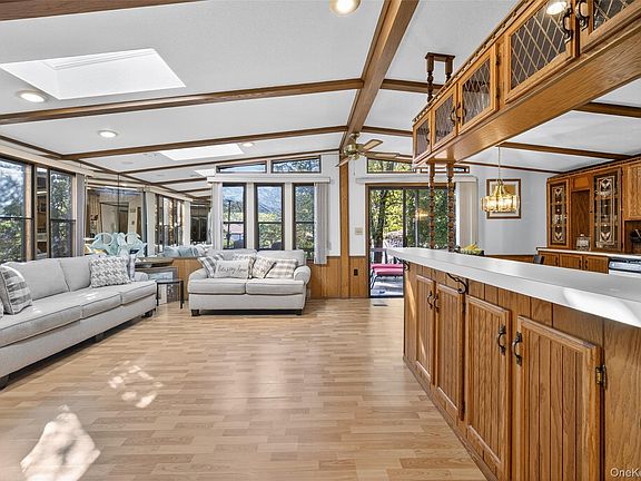 On a peaceful Cul-de sac in the desirable community of Camelot Woods sits this ranch home that has everything you could need. The bright and airy living room welcomes you and recessed lighting and open dining room with sliding glass doors out to the deck, an ideal spot to enjoy your morning coffee. Plus, open kitchen with breakfast bar and plenty of cabinetry. Two bedrooms and den that acts as a third for extra guests. Community Pool and playground. Entertainment all summer shows, bingo, movies, tennis and pickleball. Beautiful clubhouse with Gym, and kitchen. Use of beautiful Sackett Lake. A real Gem!
