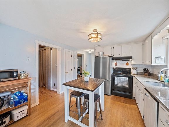 This beautifully expanded 3-bedroom,2.5-bath Cape is ideally located in one of West Plymouth’s most sought-after neighborhoods. Step onto the welcoming farmer’s porch and into a sunlit, spacious family room, perfect for both relaxing and entertaining. The heart of the home features a stunning dining room with cathedral beamed ceilings, wide pine floors, and a wood-burning stove that brings warmth and character. The kitchen offers ample cabinet storage and counter space. A versatile additional room on the first floor provides the ideal space for a home office or guest room. Downstairs, the finished walkout basement includes another bonus room, perfect for a playroom, gym, or private retreat. Upstairs, the oversized primary suite has two large closets and a private ensuite bath. Enjoy the tranquility of a quiet neighborhood setting, just minutes from the convenience, shops, restaurants, and coastline that make Plymouth such a special place to call home.