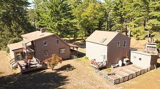Tranquil Carver property situated on over 4 beautiful acres. This is a perfect setup to run a home business with a potential office or in-law unit. It includes a full bath and kitchen above the oversized two car garage. This home is so cozy which features a wood burning stove that sits in the dining area and is capable of heating the entire home. The family room is the perfect spot to entertain, and includes a fireplace with a custom built bar. This property gives you room to roam in the large secluded back yard that is fenced in. The property backs up to open cranberry bogs and is lined with trees providing great privacy. Other upgrades include a new septic system installed in 2019, updated plumbing (2016), new water heater (2017), new well pump (2018), new electrical panel (2018) and new garage doors (2017). Easy to show, must see for yourself...