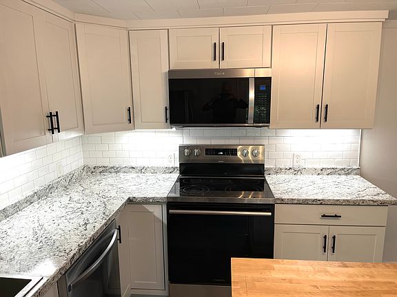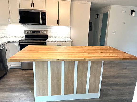 Completely renovated apartment in single unit building. Open concept kitchen/living room with butcher block island and gray oak luxury vinyl tile throughout. White shaker cabinets, Subway tile back splash. Microwave, range with conventional self-cleaning oven, convection oven and air fryer. Under cabinet lighting. Dishwasher, large kitchen sink. All appliances stainless. Bathroom includes walk-in shower with sliding glass doors and linen closet. Walk-in closet in bedroom. Laundry room downstairs, with direct access to private garage. Large deck and wooded lot in quiet neighborhood 4 miles from Durham and UNH. 2 miles from Market Basket Plaza and Calef Highway. Back up electrical generator. Landlord lives in separate house on property. One year lease. First month's rent and security deposit due at signing. Renter is responsible for oil and electric. Owner maintains well and septic systems, pays for snow removal and mowing. Renter keeps their deck clear of snow and leaves.