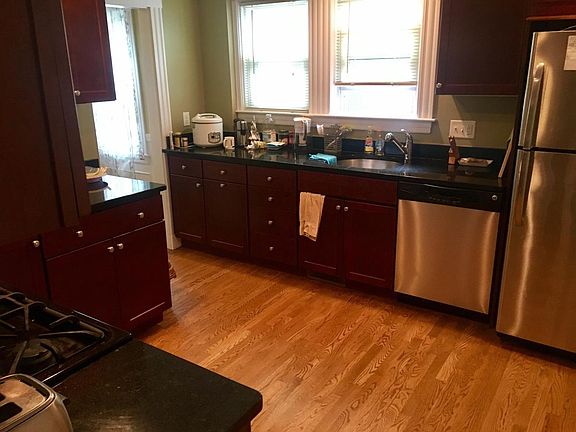Renovated Condo across from Pequossette Park. Beautiful kitchen with cherry finished cabinets, granite countertops and stainless steel appliances. Functional layout with formal dining room that has another enclosed room that could be used as an office or other uses. , Large living room with an abundance of sunlight and a marble framed gas fireplace. Updated marble bath, refinished HW floors, newer windows, central A/C, washer and dryer in unit, 1 garage space and 1 off street parking space, walking distance to may shops, cafes, and public transportation.