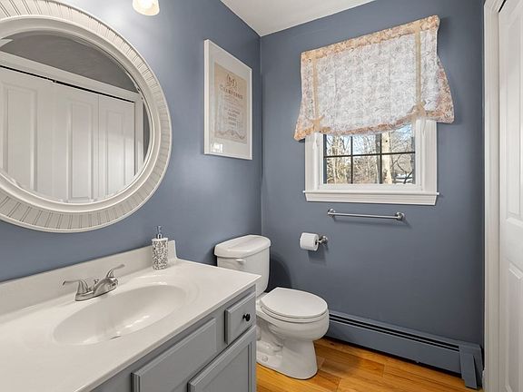 Immaculately maintained townhouse on a lovely cul-de-sac ready to move right in. Walk-in through the front door to your large living room with a lovely fireplace, and hardwood floors that opens to a spacious dining area with a slider to the deck and patio. A bright updated kitchen with ample cabinets, granite counters, and a half bath with a laundry area round off the first level. The second floor 3 bedrooms, all with neutral paint, wall to wall carpeting and spacious closets, and a large full bath. The finished lower level offers lots of options for a family room, exercise room, office area, or a combination of the above. Nicely landscaped plus a patio. Home has easy access to commuter routes, schools, parks, and shopping. First showings at the open house on Saturday. Private showings are also available. Offers due Tuesday, March 16 at noon.