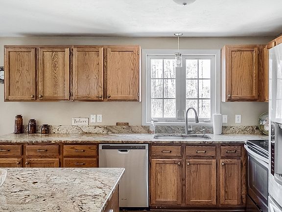 You will find this lovely colonial style home tucked in an established neighborhood on almost 2 acres of land . Featuring cabinet packed dine in kitchen with stainless steel appliances, granite counters, tile flooring , center island is perfect for informal seating plus separate dining area open to formal dining room and family room offering cathedral ceilings, fireplace and separate wood stove . Additional room makes a great den or sitting room all with hardwood flooring. 2nd floor has recently installed laminate wood flooring (3) spacious bedrooms including the primary with private bath and walk in closet . 4th room would make a great nursery or home office . Lower level is finished offering great bonus space ideal for a game or rec room…..So many options with this home ! Recent improvements inc : NEW Heating System, NEW Hot water Heater, New slider to composite deck overlooking mature trees and landscaping plus a patio area for your seasonal enjoyment .