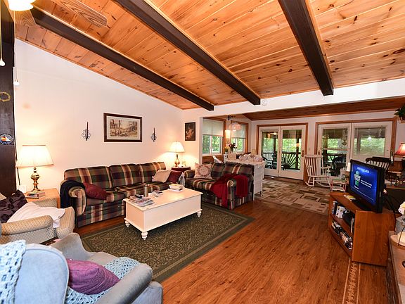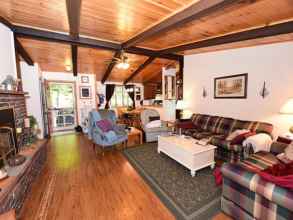 The convenience and comfort of one level living could be yours here in Madison, NH! This charming 3 bedroom, 1 bath ranch would be a great primary or secondary home, located in desirable Eidelweiss Village. As you walk into this home, you are welcomed by the convenient open concept floor plan and warm knotty pine ceilings. The main living space is comprised of a spacious living room with warm gas fireplace, step saving kitchen, convenient dining area and a quaint sitting area with ample windows. From the sitting area you can access the screen porch and private deck, excellent features for enjoying the crisp mountain air and seasonal views of Mount Chocorua. The 3 bedrooms and full bath are just down the hall completing the single level.If additional storage space is a concern of yours, do not fret. This house has a large basement with plentiful space for storage and even includes a partially finished area. In addition, there is a bonus unfinished room/workshop with separate entrance, the possibilities are endless. Eidelweiss Village is home to 3 beautiful ponds, Little, Middle and Big Pea Porridge Ponds. Here you will find 5 area beaches, perfect for seasonal recreation. There is also a convenient basketball court and small playground just down the street. Only a short drive to North Conway’s great shops, restaurants and attractions.