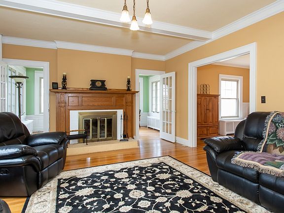 Welcome to this beautifully appointed classic brick colonial w/newer boiler (2017), newer roof (2016) updated electric, new chimney caps & repointing, vinyl windows, smart thermostat & plumbed for cent. vac. This immaculate home offers open foyer & French doors leading to a handsome living room w/beamed ceiling, exceptional fireplace & wood floors. Next is a captivating sunroom w/French doors & gorgeous copper roof. Enjoy a large dining room with wainscoting & crown molding that leads to a wonderful eat-in chef?s kitchen. Stainless appliances are newer & include a professional 5 burner gas cooktop, butcher block counters & an abundance of cabinets, heavy duty pull out drawers & pantry for all your cooking & storage needs. Mud room & ? bath complete this level. Upstairs find 3 good-sized bedrooms all with hardwoods & tiled full bath. 3rd level offers 2 more bedrooms & a generous cedar closet. Basement is partially finished w/workshop & laundry. Outside is a private patio & 2-car garage.