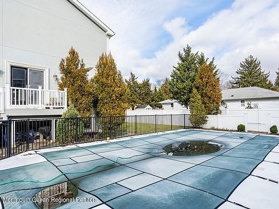 Come see this Contemporary Custom Built 3 Bedroom 3.5 Bath home nestled into a quiet Cul-De-Sac facing a large wooded lot. This home has 9ft ceilings on the first floor, a grand foyer with a chandelier lift for cleaning, skylights, surround sound speakers on the entire first floor and fully finished basement, along with full-size windows in the basement. Walk-in closets for all of the expansive bedrooms and abundant storage space. There is a security system and whole house generator hook-up and the in-ground pool is salt water and heated! Off the dining room, there is a life-time variance to build a sunroom. Finished basement has a large recreational space, a full bath, room that can be used as an office, and two large storage rooms. Home is being sold as-is with CO responsible by the buyer.