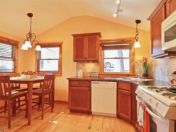 Absolutely charming lake style cottage has been updated throughout, great curb appeal and could serve as a full-time, year round residence or the perfect weekend retreat. Short walk to beach and park! Freshly mulched garden beds and a newly paved driveway lead you in to this pristine, well maintained home! This home features a spacious eat-in kitchen, vaulted and beamed ceilings, gorgeous original wood paneling and freshly refinished hardwood floors through the entire home. The bathroom has been completely updated and boasts a beautiful custom tile shower. Throughout the home you'll find numerous energy efficient windows and ample lighting. Bonus room at back of home has a glorious wall of windows and is the perfect place to relax. Plenty of space to entertain outdoors; either on the deck or in the backyard!
