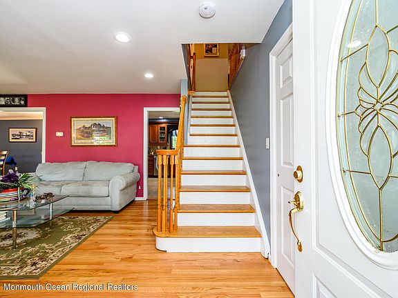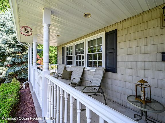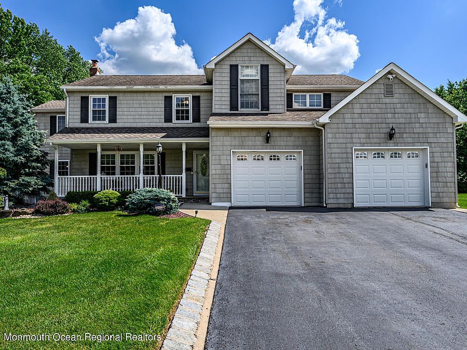 Your Dream Home Awaits! Gorgeous 4 Bed 2.5 Bath Turn-Key Colonial on a quiet Cul-De-Sac in Hazlet's Tall Oaks section has it all! An Entertainer's Paradise inside & out with Resort-like Backyard + In-Ground Pool, sure to impress any guest! Lovely landscaping, 2 Car Garage & classic Rocking Chair Porch boast instant curb appeal. Step in to find an accessible layout with gleaming HW Flrs, rec lights & modern upgrades all through. Large Living Rm & Oversized Formal Dining rm w/crown molding make dinner parties easy. Gourmet EIK offers sleek SS Appliances, granite counters, Pantry & delightful breakfast bar. Large rear Family rm holds a cozy Gas Fireplace w/sliders to lead to your Resort-like Oasis! Convenient 1/2 Bath + Laundry rm round out this lvl. Upstairs, the main bath + 4 generous