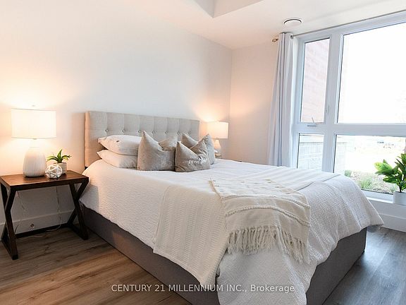 Welcome to Royal Windsor, the latest addition to the charming Balmoral Village, specifically designed to cater to 55+ lifestyle needs. Located in the heart of Collingwood, this exquisite building offers unparalleled access to all the amenities you desire, ensuring a lifestyle of comfort and convenience. Modern Conveniences with two elevators, dedicated underground parking and ample visitors parking, welcoming guests has never been easier. An Eco-Friendly Building with provisions for electric car charging stations are available in select underground parking spots, supporting your green lifestyle. Elegant Interiors of this Duchess Model include premium quartz countertops in both the kitchen and bathrooms, complemented by stylish ceramic tile backsplash. Dedicated 100-amp electrical service with a breaker panel, ceiling light fixtures in all bedrooms, and vinyl plank flooring throughout the kitchen, living room and bedroom with ensuite bathroom. Experience breathtaking panoramic views of Blue Mountain and Georgian Bay from the rooftop terrace, which is equipped with a common area BBQ and fire pit that is perfect for social gatherings and relaxing evenings. Living an Active Lifestyle couldn't be easier with dedicated outdoor bicycle parking racks, storage units, access to trails and walking distance to Georgian Bay. A convenient Collingwood bus service can take you to Blue Mountain or downtown Collingwood, making it easy to get to local shops and services without the need for a car. Deeded underground parking spot and dedicated locker. This unit is also easily accessible for use of a scooter with ground level and concrete access directly to the unit.