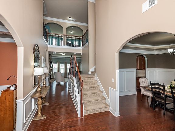 • Bookcases, Built-in Features, Bathtub, Tray Ceiling(s), Ceiling Fan(s), Dual Sinks, Entrance Foyer, Fireplace, Granite Counters, Garden Tub/Roman Tub, High Ceilings, Bath in Primary Bedroom, Pull Down Attic Stairs, Sitting Area in Primary, Smooth Ceilings, Separate Shower, Upper Level Primary, Vaulted Ceiling(s), Walk-In Closet(s)