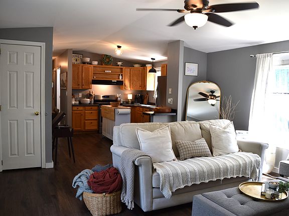 Located in beautifully maintained Crestwood Estates, this 2-bedroom manufactured home is situated on a nice level lot. Spacious front porch where you can enjoy your morning coffee. Spend summer evenings barbecuing and entertaining guests with plenty of space for patio seating. Step inside to a warm and inviting space, offering an open concept layout. The kitchen has been updated with modern appliances. and space for a breakfast nook or small dining table. The well-sized bedrooms are located at each end of the home. The Front bedroom includes a private half bath, while the back primary bedroom has a walk-in closet for ample storage. Washer and dryer hookups are located conveniently in the back hallway. perennial gardens, a large back lawn, and a shed for your outside tool storage. The home is conveniently located with quick access to I93. downtown Concord, shopping, restaurants and many amenities. Pets allowed with up to 2 dogs. The monthly fee includes trash removal, water and sewer.