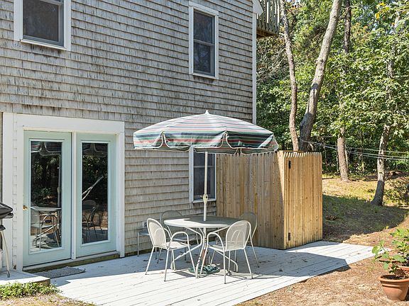 This contemporary Cape is on the market for the first time in nearly 30 years. Enter into the kitchen from the covered Farmer's Porch where you'll find an ample kitchen with a beamed cathedral ceiling. There are lovely pine floors here and throughout the house.The kitchen flows into a spacious dining area where a slider leads you to a back deck. The living room adjoins this space and has a soaring cathedral ceiling with two skylights.Off the first-floor hallway are two bedrooms as well as a full bathroom with a tub and tile floor.Up from the front door entry is the staircase leading you to the roomy primary bedroom which has a slider to its own second floor balcony facing the rear of the house. The bathroom is ensuite but can also be reached from the second-floor landing.A good-sized loft overlooks the living room, and it too has a slider to its own balcony. This is a perfect home office or a den.There is a full walkout basement that's been plumbed for a bathroom. A patio door leads to a sitting area and an outdoor shower - a Cape Cod must have!Please call for an appointment.