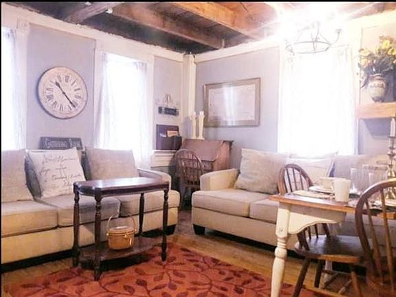 This antique cape with a good morning staircase and center chimney has exposed beams, original pine floors, crown molding, and working fireplaced wood stove. Open floor plan has living room, kitchen and dining. The bath has a claw foot tub/shower and marble corner sink. There is a washer and dryer hookup in the unit.. Free parking is available on surrounding streets or you can rent paid parking space.This 1 bedroom comes furnished or unfurnished. It is tucked away on a lane steps from Plymouth harbor, Plymouth Rock, Mayflower II, and beautiful Brewster Garden Park and a short distance to downtown, antiquing, shops, restaurants, a marina, the Spire Center, concerts, wineries, tennis, and just enjoying the best of Plymouth. Additional $200 per month for heat, electric, water and sewer. Available October 1, 2019. No smoking of any kind. Must have excellent credit and steady income.