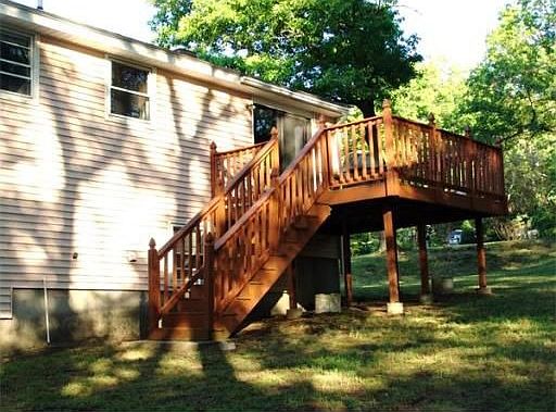 Great Location on short cul-de-sac off of Fox Hill Road with wooded backyard. This house boasts a 23x22 two car garage. 3 Bdrm Split with one full and one three/quarter bathrooms and 12x12 deck off the Dining Room. Hardwood in one bedroom, wall to wall throughout. Fireplace in family room below. Great value at a great price.