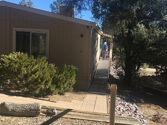 LOOKS LIKE A MODEL - VERY PRIVATE SETTING. VIEWS FROM EVERY ROOM. 3 HUGE BEDROOMS - 2 BATHROOMS - FAMILY ROOM - 1508 SQ. FT. OPEN FLOOR PLAN - CATHEDRAL CEILINGS THRU OUT. CIRCULAR KITCHEN - FRESH INTERIOR PAINT. NEWER APPLIANCES. BUILT IN HUTCHES IN DINING ROOM AND FAMILY ROOM. INSIDE WORKSHOP - 3 CEILING FANS DOUBLE FRENCH DOORS LEADING TO HUGE SCREENED PATIO OVER LOOKING FOREST (ARIZONA ROOM). CUSTOM WINDOW COVERINGS - SWAMP COOLER HANDICAPPED ACCESS WITH LOTS OF PAVERS FURNITURE NEGOTIABLE SERIAL # A/BCAL345423 ONE YEAR WARRANTY WITH HOME PURCHASE