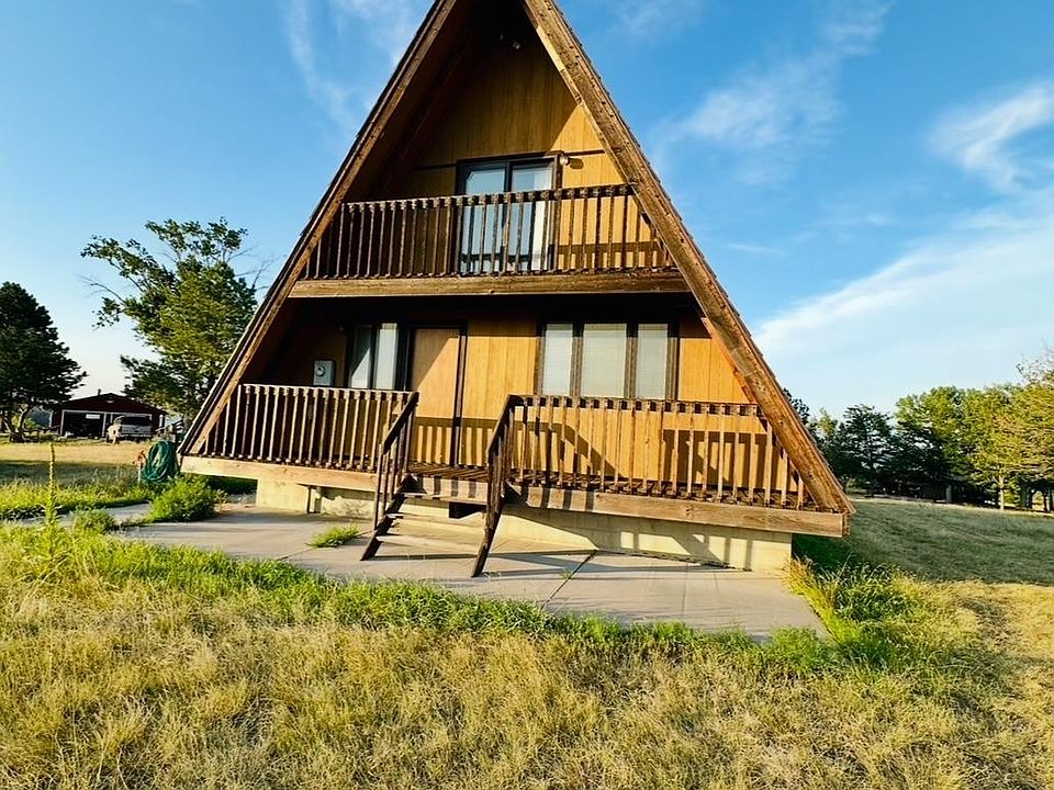 Take a look at the view from this fully furnished retro style A-frame on the South side of Lake McConaughy! The house features a primary bedroom on the upper loft level along with office space. The main level offers an open concept eat-in kitchen and living space, along with two bedrooms and a bathroom. You can also hang out in the walk-out basement entertainment space, which is equipped with a pool table, a bathroom, and plenty of storage. Make an appointment to see this stylish throwback today!