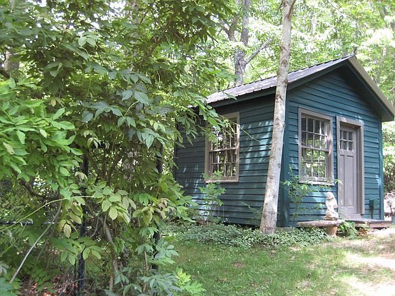 Rustic retreat, ultimate privacy, close to restaurant town of Black Mountain. Stunning views, crystal clear creek. 2 BR cottage plus studio or two units ready for rental investment, upper space ready to finish in studio. Two outbuildings with electricity look like tiny houses. Fruit trees, room for garden, all organic. Multiple heat sources: primarily mini-splits in both units. IMPORTANT: Tax value does not include renovation of studio, additional .44 acres. Total sf. includes guest studio