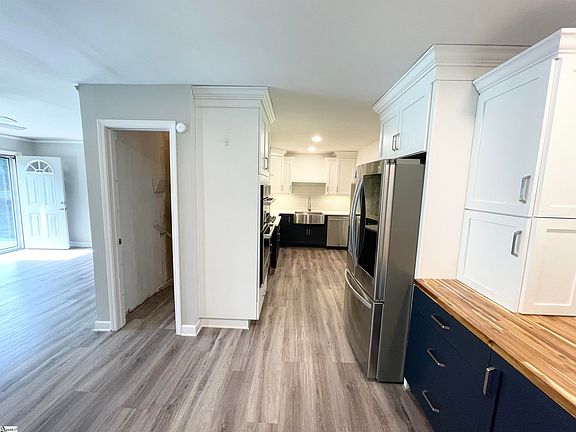Charming brick ranch in the heart of Slater-Marietta, features a beautiful recently updated, in the last 2 years, immaculate kitchen with higher-end appliances, per owner, extra features include granite countertops, wood block counter top, soft close drawers, soft close cabinets, storage galore, hidden trash can, a hidden pullout mixer stand, pot filler over stove, under cabinet lights and extra electrical sockets for convenience. A knotty pine dining room was converted into a 4th bedroom, with a closet. Gas logs, propane, in the great room will be warm and cozy for the chilly nights ahead! Side porch was converted into a sunroom or use for your desired purpose. Downstairs is a full, partially finished basement. Owner does have it heated, cooled and plumbed for propane gas heat if desired in the future. One side features built-in bookcases and was used as a bonus room/den. Other side features a garage door and used as a workshop. This home is just waiting for you to make it your own! Sold As Is!