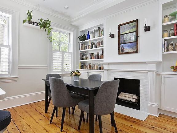 Located on a quiet gas lit street, just steps from Charlestown best restaurants, shops & the T, this 2 bed, 2 1/2 bath penthouse feels like it belongs in the Back Bay & combines historic period detail w/modern updates & amenities. Ren. kitchen gets natural light & has white shaker cabinetry, subway tile, quartz counters, island that seats 4, ss. appliances Thermador range, wide pine flooring. Spacious dining w/wood burning fireplace & 2 custom built-ins. Wide pine flooring, extra wide original baseboard & large crown molding are found throughout. Large living can w/ bow front windows & marble mantle w/custom gas fireplace. Spacious master ensuite bath. Master bath boasts wainscoting, hardwood flooring, sep. tub and shower& grey vanity w/marble top. Guest suite features access to private deck. Enormous roof deck w/city views W/cent. ac & central location, this is the one you have been waiting for!