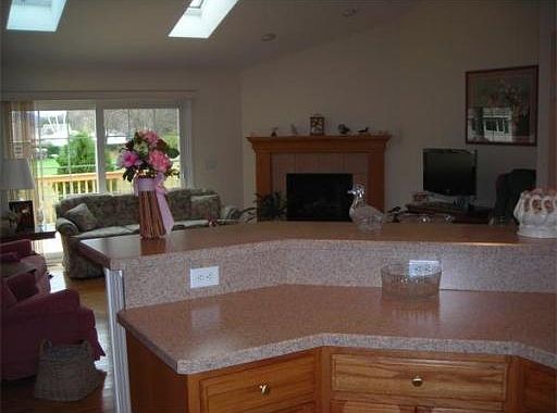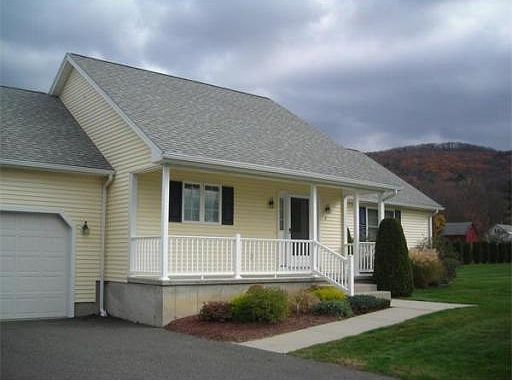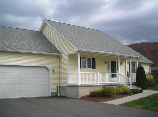 Very popular Harvest valley Community, offers 'country flair' atmosphere with short jaunt to all amenities. Duplex style homes offer 1 floor living with vaulted ceilings, gas fireplace, 'open-floor' plan with good light & sliders to very large rear deck. This unit in particular sets up to offer greatest privacy & beautiful mountain views ! Full basement offers an opportunity to expand living area, Master-Bath / Walk-in closet, central-vac, security-system, laundry, 2-zone heating. Gas comversion now available to those who prefer.
