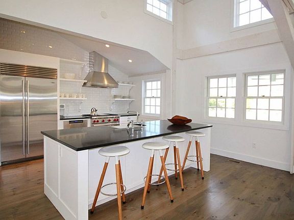 Rental Registration #: 22-492 Rental Registration #:22-492 Exquisite, new, modern, Barn-style construction with state-of-the-art finishes has seven bedrooms and five- and one-half baths and three fireplaces. On a quiet cul-de-sac street in Wainscott South. Conveniently located - with easy trip to town shops, restaurants, Georgica Pond, farm stand, Wainscott beaches and Jitney. The new construction features a dynamic great room with two-story vaulted ceilings and fireplace, a brand-new kitchen featuring a Wolf stove, Sub-Zero refrigerator and wine refrigerator, and Scotsman ice machine, a first-floor master bedroom suite with fireplace, a half bath and three additional upstairs guest bedrooms and baths. The original Cottage space retains the historical character with three more bedrooms and two baths, a den with a fireplace: large mudroom and a laundry/pool house space. New central air and heating, new gunite pool with beautiful landscaping have also been added, as well as a covered patio with views of the historical windmill just over the hedges. RP 22-492