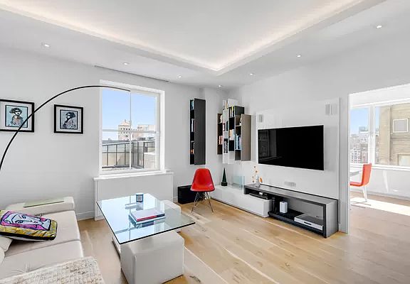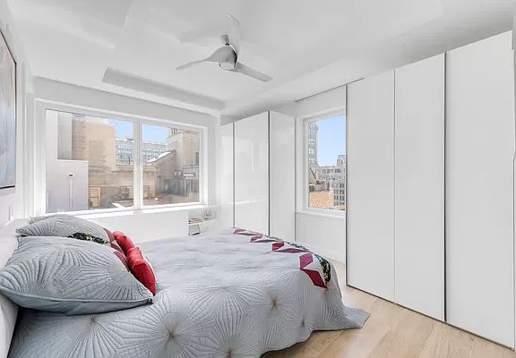 Sunny Two-Bedroom Penthouse Less Than a Block from Gramercy Park Located on a quiet tree-lined street with light-filled triple exposure views to the South, East and North, 15JK is a recently gut-renovated two-bedroom/two-bathroom on the top floor of The Sage House, a fully-staffed 24/7 doorman building next to Danny Meyer's acclaimed Maialino, the Jade Bar and the famous Gramercy Park Hotel. The entire apartment was fully remodeled and expanded (2020 - 2021), now with nearly 10-foot ceilings, custom PTAC covers with storage, new Porcelanosa floors, a new stylish Italian kitchen with Miele and Liebherr appliances, huge pin-drop quiet picture windows that open fully both horizontally and vertically and enormous Lazzoni wardrobes. The oversized primary bathroom with a dressing area includes the latest Toto washlet toilet, Porcelanosa and Robern cabinetry, new sleek Snow White Krion (Porcelanosa) walls, rain shower, insets for art and automated indirect LED lighting, with the secondary bathroom adding a Duravit washlet toilet and Porcelanosa fixtures. A fully automated Smart home with contemporary styling, Lutron shades, LED lighting, in-wall Bose speakers in every room including the primary bathroom and a brand new WiFi-controlled Honeywell HVAC system can all be programmed and operated from anywhere with a handheld device. The second bedroom, located in the southeast corner and getting great direct light all day, could easily serve as a dining room/home office. Besides Gramercy Park, The Sage House is two-and-a-half blocks from Madison Square Park and convenient to nine subway lines, as well as the city's best restaurants, Fotografiska (the largest photography museum in the world) and Union Square Greenmarket. Friendly co-op board, sublets, pied-a-terres, gift of funds, and pets allowed. Storage available.