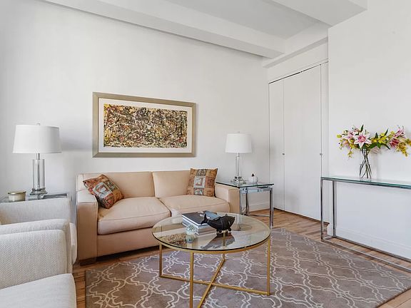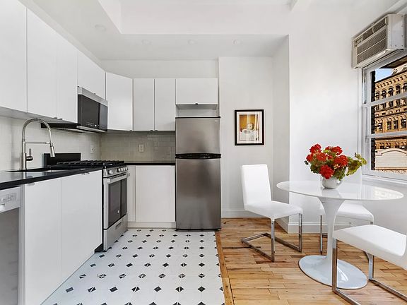Sunlight from 2 oversized windows greets you when you walk into this newly renovated pre-war apartment. The living room is spacious enough to create a home office. The kitchen has a dining area where you can enjoy your morning coffee as the sunshine streams in with an unobstructed city skyline view. The apartment is ultra-quiet thanks to its interior location that offers privacy without sacrificing light or spaciousness. The oversize kitchen has been newly renovated with a custom black Caesarstone countertop and a white tile backsplash. All stainless steel appliances are new including the GE gas stovetop / oven. The renovated bathroom is located off the foyer with white tiled bathtub/shower and black wood vanity with storage. The 2 closets provide plenty of storage. The Sage House is located in the heart of Gramercy Park and offers quintessential classic pre-war NYC living with its elegant double-height lobby entrance that immediately creates a peaceful feeling each time you return home. Sage House was built in 1915 for the Russell Sage Foundation, which was an early advocate for social work and urban planning. Amenities include a 24-hour doorman, live-in super, and laundry room. Bike and storage units are available for rent. The building is pet friendly and allows 80% financing, pied-a-terres, gifting and unlimited subletting after 1 year of ownership with board approval. Madison Square Park, Union Square Park's green market and many subway lines are just blocks away.