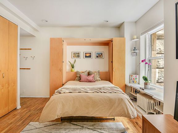 An ideal combination of location, low monthlies and building services makes this efficient studio the perfect starter home (or pied-à-terre) at the Sage House* - a historic co-op in Gramercy, Manhattan's most genteel neighborhood! This sweet home enjoys 9'1" ceiling with recessed lights, hardwood floors, and two super-sized windows that overlook serene East 22nd Street. The queen-size Murphy bed and various built-ins allow flexible use of the entire studio, and the open kitchen features dishwasher and generous cabinets. Tiled bath, double closet, and through-window A/C complete this home. (Note: studio next door is also available for sale for a rare combination opportunity at an amazing price!) The Sage House is a full-service co-op in a gorgeous landmarked pre-war building located just north of Gramercy Park (Manhattan's only private park). Building amenities include full-time doormen, resident manager, central laundry room, elevators, bike room, and storage (short wait list). Flexible board welcomes your pets, and considers various purchase scenarios including gifts, co-purchase, and parents buying with professional child. Best of all, generous sublet policy after just 1 year! This home is superbly located in the heart of Gramercy neighborhood. Around the corner is the famed Gramercy Park Hotel (with Maialino restaurant and Rose Bar), and within few blocks are notable eateries (Gramercy Tavern, Union Square Cafe, Upland), Equinox, Soul Cycle, both Madison Square Park and Union Square Park, and so much more. The 6 train is 2 short blocks away, and there's easy access to 1/2/3/4/5/6/A/C/E/F/L/M/N/Q/R/W & PATH trains at Union Square where you can also find Whole Foods, Trader Joe's and the world famous Union Square Farmers Market. Move right in or bring your designer to make this pre-war jewel shine. *Built in 1912 in sixteenth-century Florentine palazzo style by architect Grosvenor Atterbury, the Sage House was formerly the headquarters of the Russell Sage Foundation and was designated a Landmark by the Landmarks Preservation Commission in June 2000.