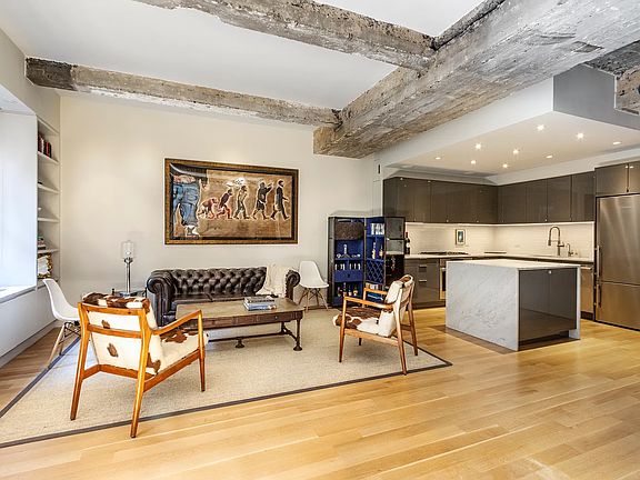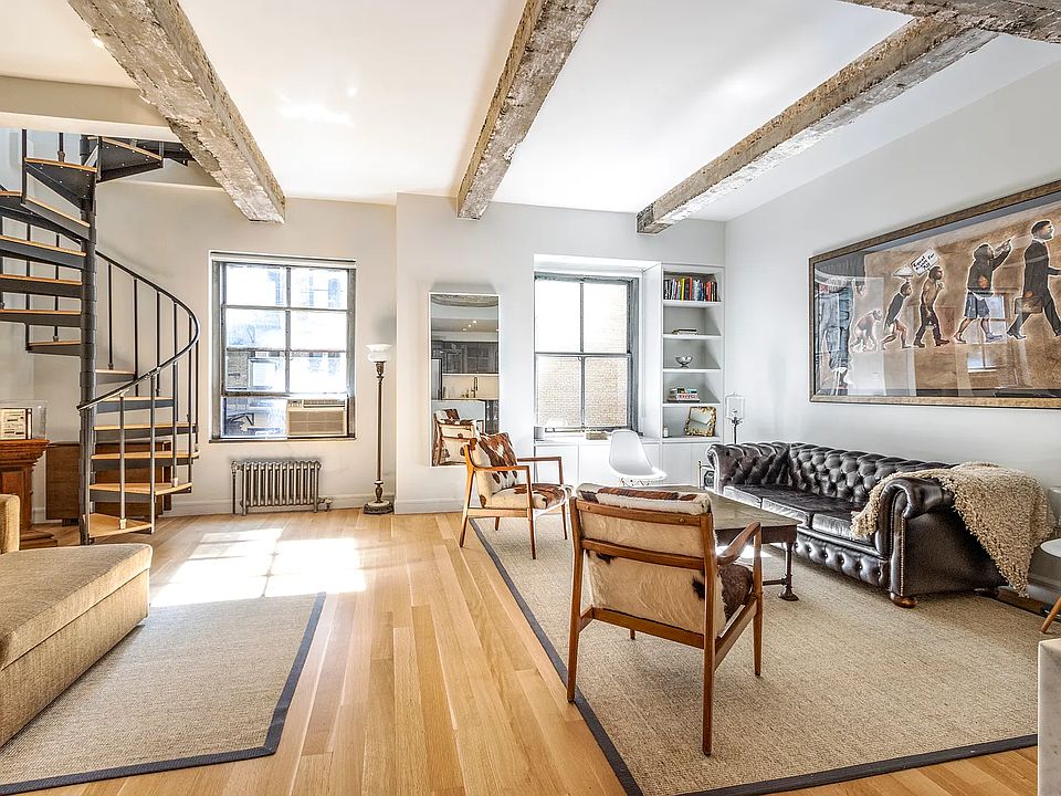 Welcome home to this exquisitely renovated duplex loft at the Sage House. This bright, spacious home boasts high ceilings, charming exposed beams and an open floor plan that allows for a multitude of different layouts. The main level of the apartment has plenty of space for separate living and dining areas, and boasts a sleek, open kitchen that is perfect for entertaining. All appliances are Bosch and custom lacquered cabinetry affords plenty of storage. There is ample counter space including a large center island with additional storage. There is also a full bathroom on this floor. A beautiful circular staircase leads to the second level. This floor is currently set up as a sprawling primary bedroom suite with seating area and separate home office with custom closets. One can easily convert this to a proper two bedroom or enjoy as is. A full bathroom with bathtub complete this level. This bespoke residence offers hardwood floors, recessed lighting throughout and the most charming location in the heart of Gramercy Park. Built in 1912, the Sage House is a landmarked prewar co-op building with an elegant sandstone facade. Amenities here include full-time doorman, live-in super, central laundry, bicycle room and storage. Pets and pied-a-terres are permitted as is subletting after one year of ownership with board approval. The building allows up to 80% financing. *The top floor of the duplex is currently configured as an oversized 1 bedroom plus home office, but can be converted to a 2 bedroom plus home office.