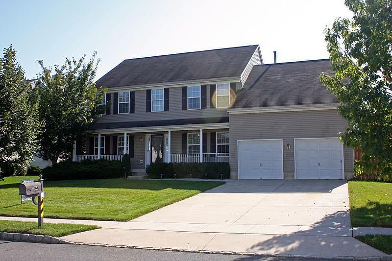 JUST REDUCED IN PRICE! Impeccable 10 room center hall Colonial in desirable Mallard Creek section in Burlington County. The open floor plan is light and airy and great for entertaining. The dramatic foyer entry leads to a private library or office, a formal living room with French Doors and a stunning formal dining room. The kitchen has been upgraded and the breakfast room overlooks the family room and sunroom with a vaulted ceiling. The fireplace is double sided and services both the family and sunrooms. The Master Suite on the second floor features a sitting area, full bath with his and hers vanity, stall shower and soaking tub. Three generous bedrooms offer spacious sleeping accomodations. The professionally manicured grounds, solar lighting in the front yard, deck and private patio in the rear with an awning for those sunny days are a plus. Home is being sold as a short sale with 3rd party approval. Buyer is responsible for township inspections and C.O. Don't miss out on this home before it's gone
