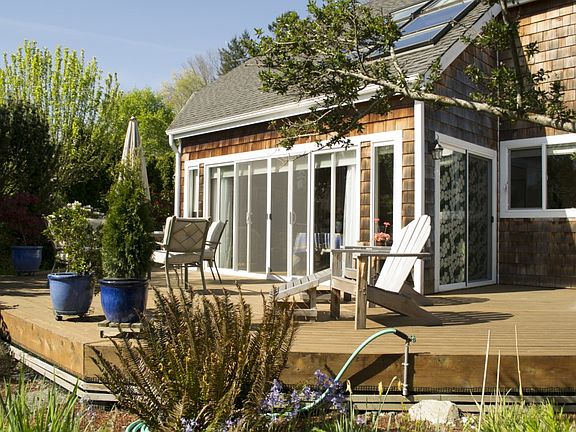 Enjoy the beach just 100 feet from this NW architecturally classic open concept two story home. Sip coffee from your deck while watching the ferry glide by from this highly sought after in-town location that accesses restaurants, shops and galleries with a 5 minute walk. Its a walk score 100+! Features & upgrades include vaulted ceilings, open skylights, heated floors, jetted tub, SS appliances, upstairs laundry and built in vacuum. Waterside views and birding take center stage in this coveted private neighborhood. New windows provide ample light to the open floor plan. Privacy abounds in the low maintenance front garden with wide wrap around deck.The rear court yard is professionally landscaped with massive rocks and a brick patio- perfect for fireside evenings.