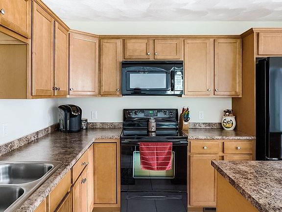 Move in ready townhouse in quaint condo community . Open concept floor plan featuring cabinet packed kitchen with center island,, fully appliance, separate dining area with hardwood floors, wainscoting and crown molding , spacious LR with newer plank flooring, propane FP and slider to private deck , 2nd floor has spacious master suite with California bathroom and walk in closet , 2nd bedroom and loft area that is ideal for office space or sitting area. Lower level is fully finished making a great family or game room with extra closet space and full bath PLUS slider to patio area. This End unit abuts wooded area offering a peaceful setting but still close to highway access