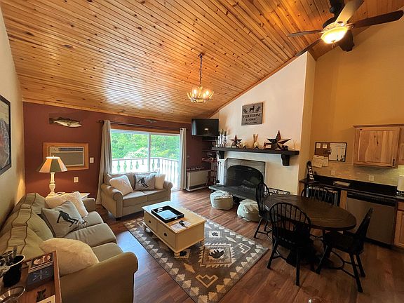 This beautifully updated chalet styled ski condo is ready to go with three bedrooms, two baths, and sleeping loft the kids will love. The wood covered cathedral ceilings make the living area feel airy and bright! When winter arrives you will enjoy the two wood burning fireplaces, one in the living room, and the other in the primary bedroom. The layout is wide open so everyone is included in the apres ski party; this kitchen has it all including the essential wine cooler. Two A/C units keep you cool in the summer, and the two efficient Rennie units along with all new windows are there for the winter months. Lots of natural wood details have been added making this feel like the cabin getaway people enjoy. Mostly furnished, golf club membership available if desired, and strategically located between Attitash, Cranmore, and Wild Cat Ski areas. Also just up the road from Story Land:)