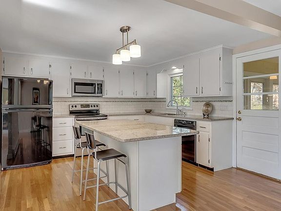 Light, bright and airy updated home in the perfect neighborhood setting. Beautiful granite kitchen with large center island is open to the dining room, living room and three season porch which overlooks the large, flat, private backyard. Gleaming hardwood floors in all three bedrooms on the first floor, and newer carpet in the 4th bedroom in the lower level. The lower level features a finished family room with high ceilings and an office area, cedar closet, full bath and separate laundry room with sink. This home boasts energy efficient thermopane windows, Smith boiler, and a 200 amp electrical system. Great location close to golf, beach, playground and more. Gas line at the street for easy conversion. All this plus Westfordâs top schools.