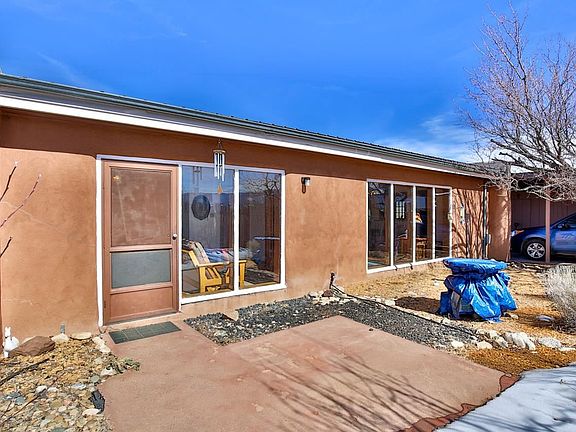A Wonderful jewel of a home with old world charm a big location and views. This home in the popular Blueberry Hill neighborhood sits on a knoll overlooking Taos Mountain, El Salto, and Taos Valley. The house is light and bright with a wall of south facing windows. A private enclosed patio gives you the perfect compliment of outdoor space. The home is pumice with lots of solar gain which creates a space that is warm in the winter and easy to heat. The angle of the overhand also allows the house to be cool in the summer. Low utility bills make this house easy to maintain. The carport offers a covered portal next to the main entrance and a large shed in the backyard has three separate storage spaces. There is room to expand on the home so a buyer could explore the idea of a second story or a roof deck. The property is currently configured with 1 bedroom, 1 bath, a nice living room/ kitchen open space, and a very large studio area. Though compact, this home is a true find in a stellar location.
