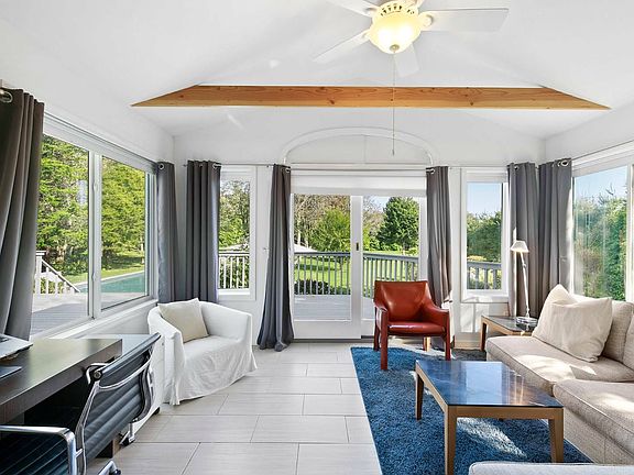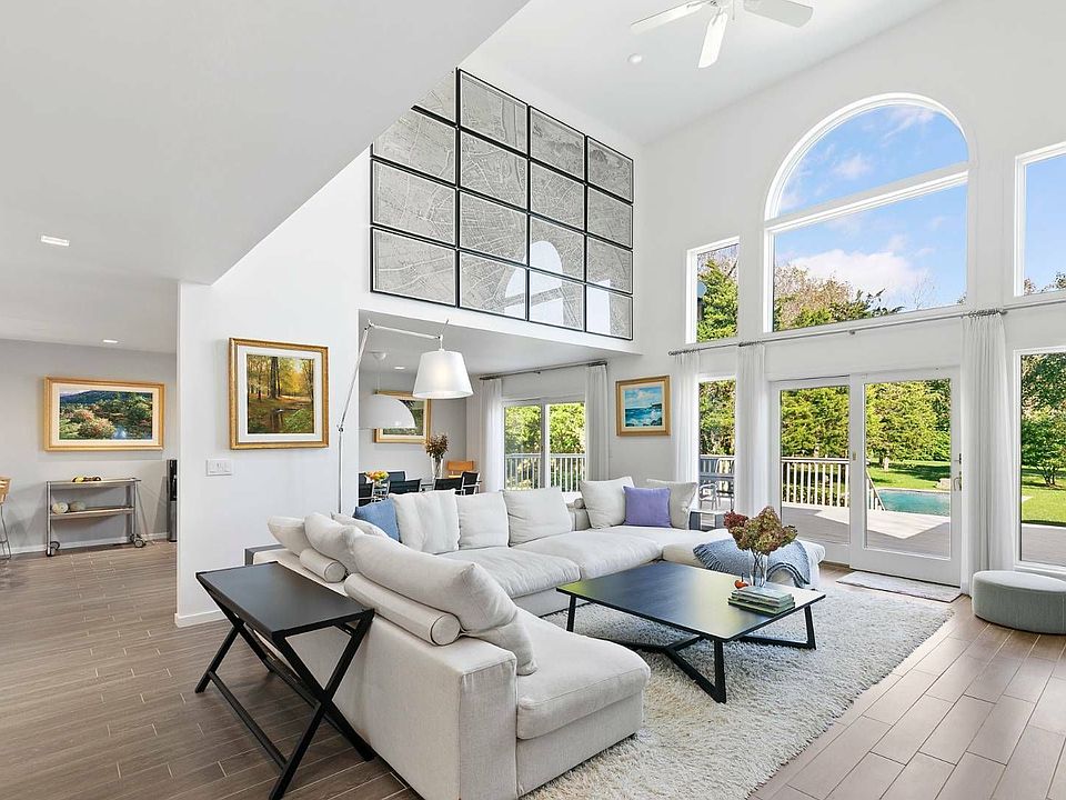 Renovated Southampton GemWelcome to 4 Long Springs Road! This beautiful and recently-renovated home is situated on 1.1 gorgeous acres and just across from a farmland! Step inside the double height foyer and be wowed with the open floor plan concept offering approximately 6,000 square feet of living area. The living room boasts a 22-foot cathedral ceiling complete with a wood burning fireplace and large windows overlooking the beautifully landscaped backyard. The welcoming outdoor palette provides an abundance of natural light to every area of this special home featuring 4 bedrooms and 5.5 bathrooms. The grand master suite is conveniently located on the first floor and has elegant wall-to-wall custom cabinetry from the renowned Italian custom furniture builder, Marelli International. The elegant bathroom features radiant heated floors, a jacuzzi -soaking bath, a full-size shower with a built-in sitting bench and a spacious double sink vanity. The sunroom completes the luxurious ambience and provides views and access to the deck and backyard. A stunning state-of-the-art Italian Arclinea modern gourmet eat-in kitchen offers stainless steel appliances, quartzite countertops, full height stainless steel fronts, a Miele refrigerator, wine cooler and a freezer side-by-side. A large home office is equipped with custom made cabinetry, an additional full bath and powder room, a washer and dryer laundry closet which completes this magnificent first floor. Go upstairs to find the second-floor landing open to the living room with a bridge walkway that captures the beauty of the backyard through the oversized glass windows. On this floor, you will find a sizable en-suite bedroom with 4 custom-built bunk beds, a queen bed with its own large bathroom and a second, bright and cheery en-suite guest bedroom with its own bathroom and walk-in closet. A third bedroom can be accessed either from the second floor landing or from a private side access door. This bedroom has its own bathroom, full kitchen, washer/dryer and has a CO to be used as a private apartment that can be enclosed or separated from the main house. The fully-finished, lower level with additional 1,270 sq.ft of living space has a double living room offering an abundance of space for indoor entertaining and plenty of space for a full gym, including 2 entertainment seating areas and a large, finished closet with storage area. The house has an attached 2 car garage and outdoor parking for 5 cars and features a 5 zone central HVAC and central vacuum systems. Outside, the gorgeous and spacious yard boasts a heated, gunite pool, an outdoor shower and a spacious deck surrounded by mature landscaping making this the perfect setting. This is ideal Hamptons luxury living minutes from the village and the best ocean beaches!