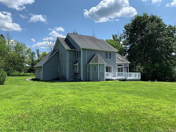 Beautifully updated Country home in the very desirable Longmeadow Estates. Large Living Room with Cathedral ceiling, Fireplace, French Doors to Deck, New lighting & carpeting. Front Den/office to watch the game or curl up with a good book has French Doors & New carpet. Gorgeous Newer Gourmet Kitchen with Quarts Counters and solid wood soft close cabinets, Unique River stone hot plate. Newer stainless-steel appliances. 8-foot center Island with 5 Chair breakfast bar with pedestal lights, convenient built in Desk. Cozy Breakfast nook to enjoy the tranquil sunset views of private back yard. Walk out to large deck with room for expansion. 2 Car attached Garage lets you carry the groceries into the kitchen with ease - connects through the mud area with updated 1/2 Bath, Laundry/Pantry with new flooring. Faux wood blinds on most windows. Upper level has large Master Bed with private Bathroom and walk in closet. Additional 2 generous sized beds & granite counter in guest Bath. Brand New 2 zone Lennox central air condition system. Utilities include propane hot water baseboard heat and newer boiler & large hot water heating system. Newer 50-year roof in 2001, storage shed. Swing set 2020, Anderson front screen storm door, Private 5.9 Acres Corner Lot. Great commuter location is minutes to 395. 30 minutes to Providence or Worcester. Great shopping & restaurants in downtown Putnam. Showings to start Wednesday 28th.