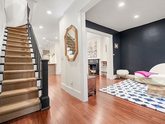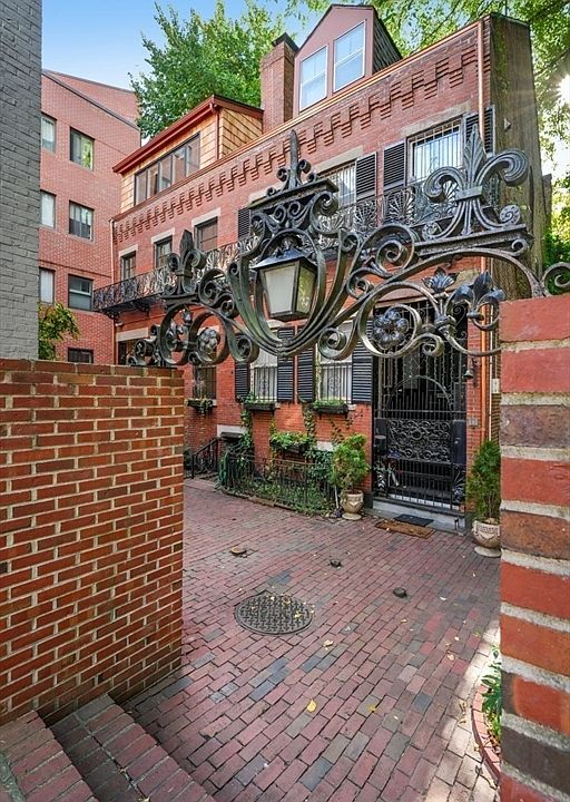 Rare single family townhouse tucked away on a private brick courtyard in the historic Bay Village with parking steps from your front door. The open floor plan provides the sought after kitchen, dining and living on one level, with a convenient half bath. The kitchen is a cook's dream with custom cabinetry, Taj Mahal Quartzite counters and island with leathered finish, dual-fuel Bertazzoni range and breakfast bar. The kitchen leads to an inviting dining room with original marble fireplace. The front living room overlooks the brick courtyard. The second floor has two bedrooms, an additional family room with fireplace, and a renovated bathroom with Porcelanosa fixtures. The top floor owner's suite includes an en suite bath and a sunny sitting room that opens to a large Ipe wood deck overlooking Elliot Norton Park. The finished basement has natural light, laundry, and a separate entrance. Three zones of heating and a/c. Tankless water heater.