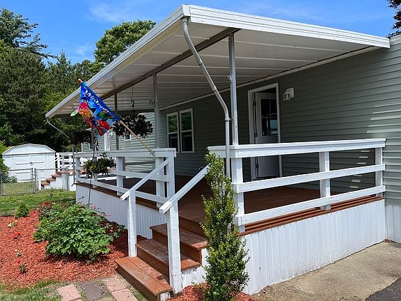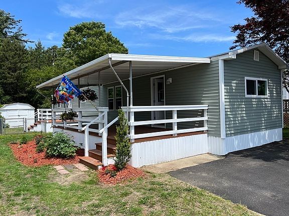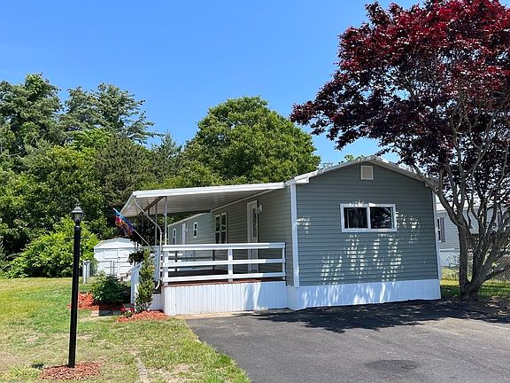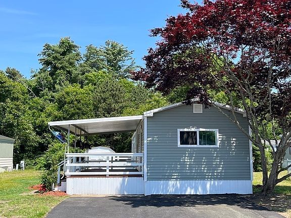 Redesigned and renovated from top to bottom! EVERYTHING is BRAND NEW; rubber roof, electric service and panel, kitchen cabinets, wood flooring, quartz countertops, Whirlpool stainless steel appliances, windows, hot water heater, furnace, plumbing, fixtures, oversized bathroom and shower with laundry, 2x4 construction, roll insulation, sheetrock, plaster, vinyl siding and skirting. 2 decks great for entertaining, one covered and one open. Fenced in portion of yard perfect for ease of pet ownership. $624 monthly fee takes care of water and sewer, weekly trash removal, real estate taxes, snow plowing of main roads, and road maintenance. Located on Dick's Pond, walking distance to restaurants and shopping, short drive to Onset Beach. Don't miss this beautifully modernized and completely transformed 1978 Mobile Home in a quiet, 55+ community.