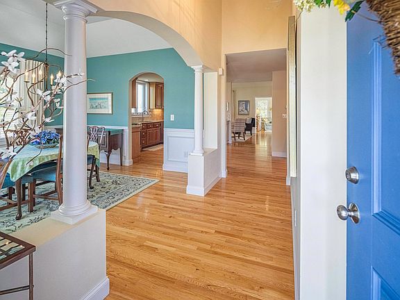 Welcome to Thornwood Commons at Pointe Place—a stunning ranch-style home in a sought-after 55+ community. Designed for both comfort and elegance, this residence showcases hardwood floors throughout, a chef’s kitchen with custom cherry cabinetry, granite countertops, stainless steel appliances and a center island and a spacious dining room accented with columns and wainscoting. The vaulted great room flows seamlessly into a bright sunroom, perfect for enjoying natural light year-round. The first-floor primary suite offers a spa-like retreat with a soaking tub and tile shower. Additional well sized bedroom with full bath and 1st floor laundry. Step outside to an oversized deck overlooking a beautifully landscaped, private yard—ideal for relaxing or entertaining. wonderful sunroom with gas fireplace leading out to the private composite deck. Additional highlights include geothermal heating and cooling, providing energy efficiency and year-round comfort. Just minutes away from Wentworth Douglass Hospital, restaurants, shopping, and easy highway access. Don’t miss the opportunity to make this remarkable property your new home!