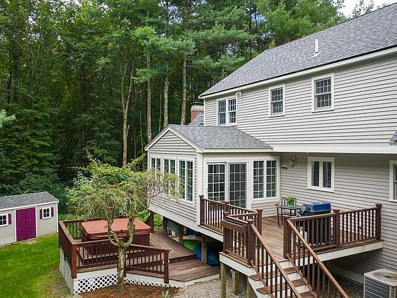 Fantastic price for this HITCHIN??? POST GREENS home on 1 of the largest & most private yards in this popular neighborhood! Fantastic backyard w/ 30 x 15 heated AG pool, hot tub & fire pit borders conservation land. Open floor plan b/w kitchen w/ center island & eating area & spacious front-to-back family room w/ a sky lit cathedral ceiling & gas fireplace. Year-round view of backyard in sunroom w/ vaulted, beadboard ceiling, Anderson windows & slider to mahogany deck! Substantial master suite w/ full bathroom, walk-in closet + a 2nd closet, & a large bedroom w/ a seating area & a coffee/wine bar! Smartly finished LL w/ full windows & exterior door has 5th bedroom, weight room & playroom/man cave w/ fireplace (pellet stove) & bar area. Neighborhood offers miles of sidewalks, basketball court, adjacent sport fields & Easter egg hunt! Within 2 miles are 3 award-winning public schools, tennis courts & 2 playgrounds. Meticulously maintained home & yard ~ what a gem!