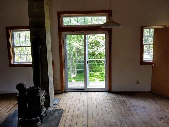 Beautiful artists' studio with full kitchen and bath. Newly renovated hard wood floors and all new appliances. The apartment also includes a large closet/pantry, wood stove, and movable walls, as well as a beautiful deck overlooking the property with access to a cedar sauna and outdoor patio. $800 (utilities not included) In the winter, you will most likely pay $300 in utilities. Contact us to review the lease agreement, look at the apartment, and fill out an application. Tenant responsible for all utilities