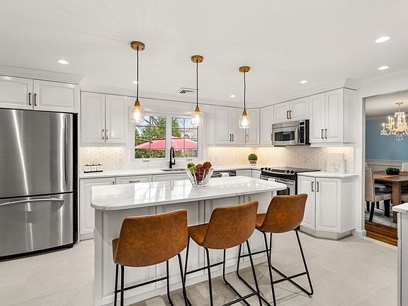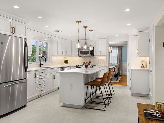 Welcome to this charmingly renovated home in Winchester! With nearly 3,500 sqft, this detached single family home offers an elegantly renovated open-concept kitchen with quartz countertops, center island and informal dining area. The kitchen flows seamlessly to a formal dining room and a cozy four season sunroom that can be used as a TV room, playroom or an office, your choice. The welcoming living room offers large bay windows and a cozy fireplace. Completing the first floor, a primary bedroom with a newly renovated ensuite, two additional good sized bedrooms, a full bath and a remodeled half bath. The spacious finished lower level is ideal for relaxation and entertainment with a serene reading corner or playroom, a home theater, a full bath and an office space. Stepping outside to a manicured yard and outdoor space, the large patio is perfect for summer gatherings. Two car garage with plenty of storage. Easy access to the Wedgemere & West Medford stations, I93, Route 3...