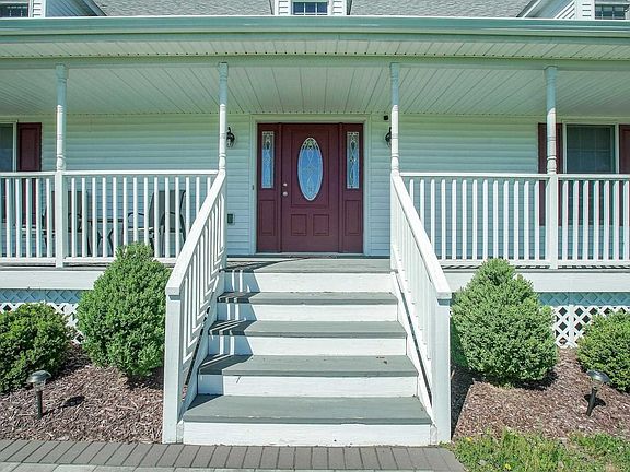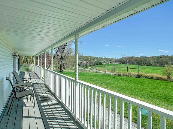 Stunning 4BR CAPE w/rocking chair front porch overlooking the countryside! Brazilian Cherry floors, spacious, well-appointed kitchen w/SS appliances and center island/breakfast area w/SGD to deck. Laundry off K, formal DR, LR w/gas FPL. First level Master BR w/tray ceiling, WIC, & gorgeous master BTH. Handicapped accessible. Unfinished bonus room over garage offers extended family possibilities. Corner property. Dutchess County Rail Trail nearby, as well as, other conveniences. Window treatment shades will stay. Has an exterior generator hook up for a portable unit.