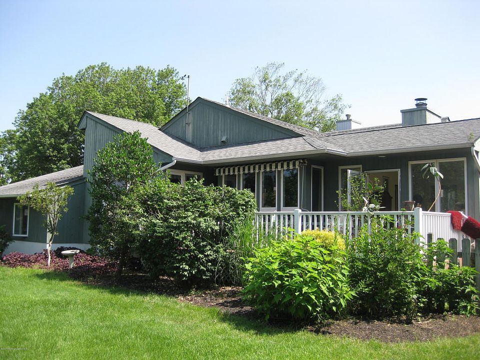 Terrific opportunity to live in Monmouth Beach! Tucked away in Monmouth Beach estates, you will find this 3 bedroom 2 full bath custom/contemporary ranch home on a large parcel. Soaring ceilings allow for loads of light. Living room with fireplace opens to formal dining room and sun porch. Large room sizes, hardwood floors, recessed lighting,outdoor shower and private well for outdoor watering are just a few of the features. Bike to the beach, river or town. Close to NYC transportation. Make an appointment today!