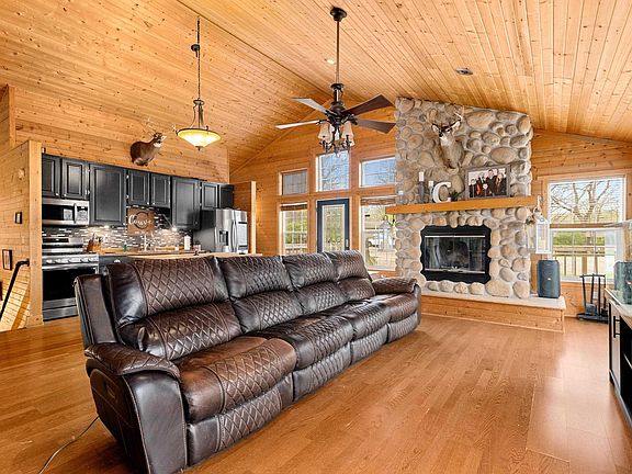 Come check out this lake front raised ranch home at Lake thunderbird subdivision, this home boasts 4 bedrooms and 3 full baths in a quiet no wake zone with a double lot and plenty of frontage for docks. This home has a list of updates and is ready for its next owners. Updates include: new hot water heater 2022, new central air & furnace 2023, new cabinet faces & center island in kitchen 2022, new ROOF 2022, new deck railing 2021, redone landscaping 2021, new carpet in 2 bedrooms, and all new appliances 2023.