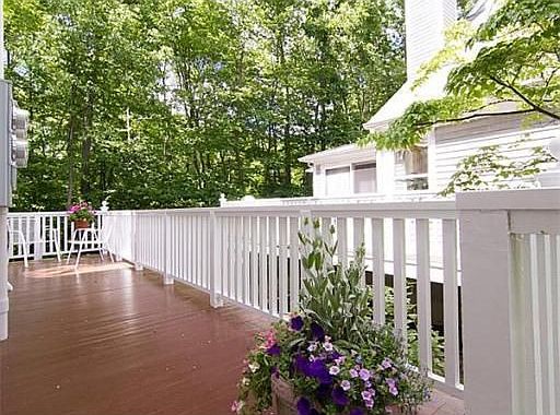 Highly sought after Lincoln Style End Unit at Maple Ridge. Tranquility surrounds 4 spacious levels with Finished Basement with Full bath, 2/3 Bedrooms, 2 Full Baths, 2 Half Baths, 3 Season Porch overlooking Conservation Land, 29x12 wraparound Deck, Lovely French Doors separating your DR from LV, Eat in Kitchen , Master Suite with Veranda for your morning coffee, minutes from Major HWYS, Bus to Downtown, Shopping and fine Dining. Don't miss this Exceptional and Elegant Unit.